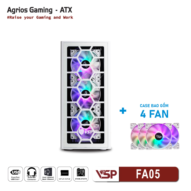 Vỏ Case Máy Tính VSP Gaming FA05 - Trắng + 4Fans Led