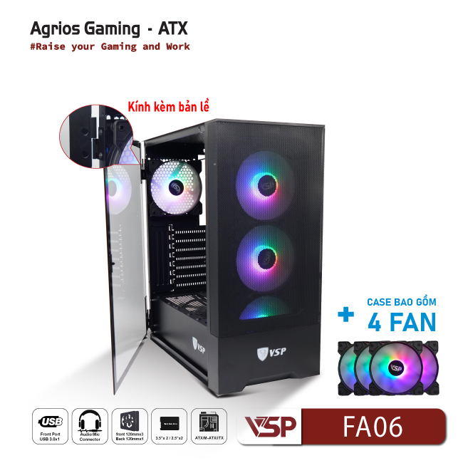 Vỏ Case Máy Tính VSP Gaming FA06- Đen + 4Fans Led