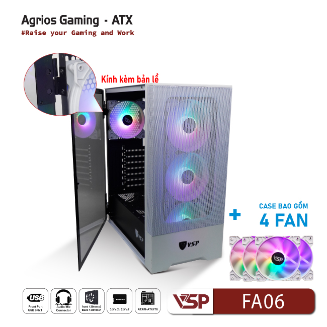Vỏ Case Máy Tính VSP Gaming FA06 - Trắng + 4Fans Led