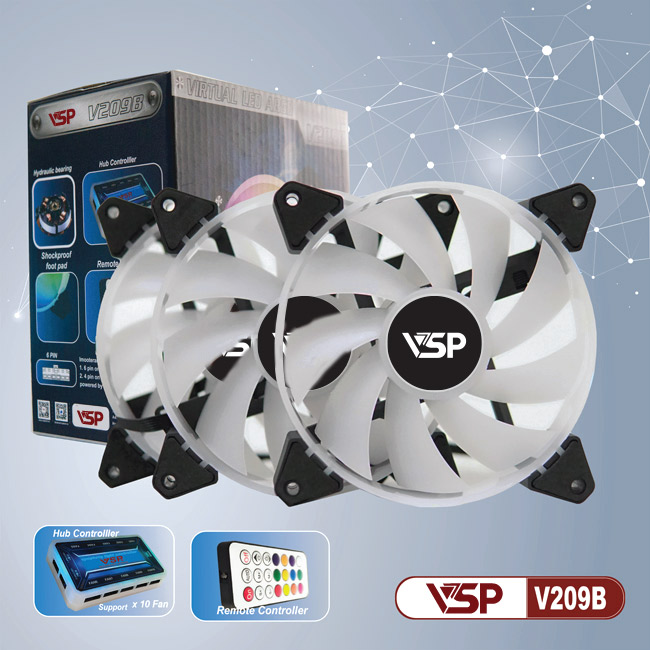 Quạt tản nhiệt VSP Bộ 3 fan + hub Led RGB V209B