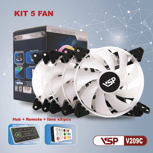 Quạt tản nhiệt VSP Bộ 5 fan + hub Led RGB V209C
