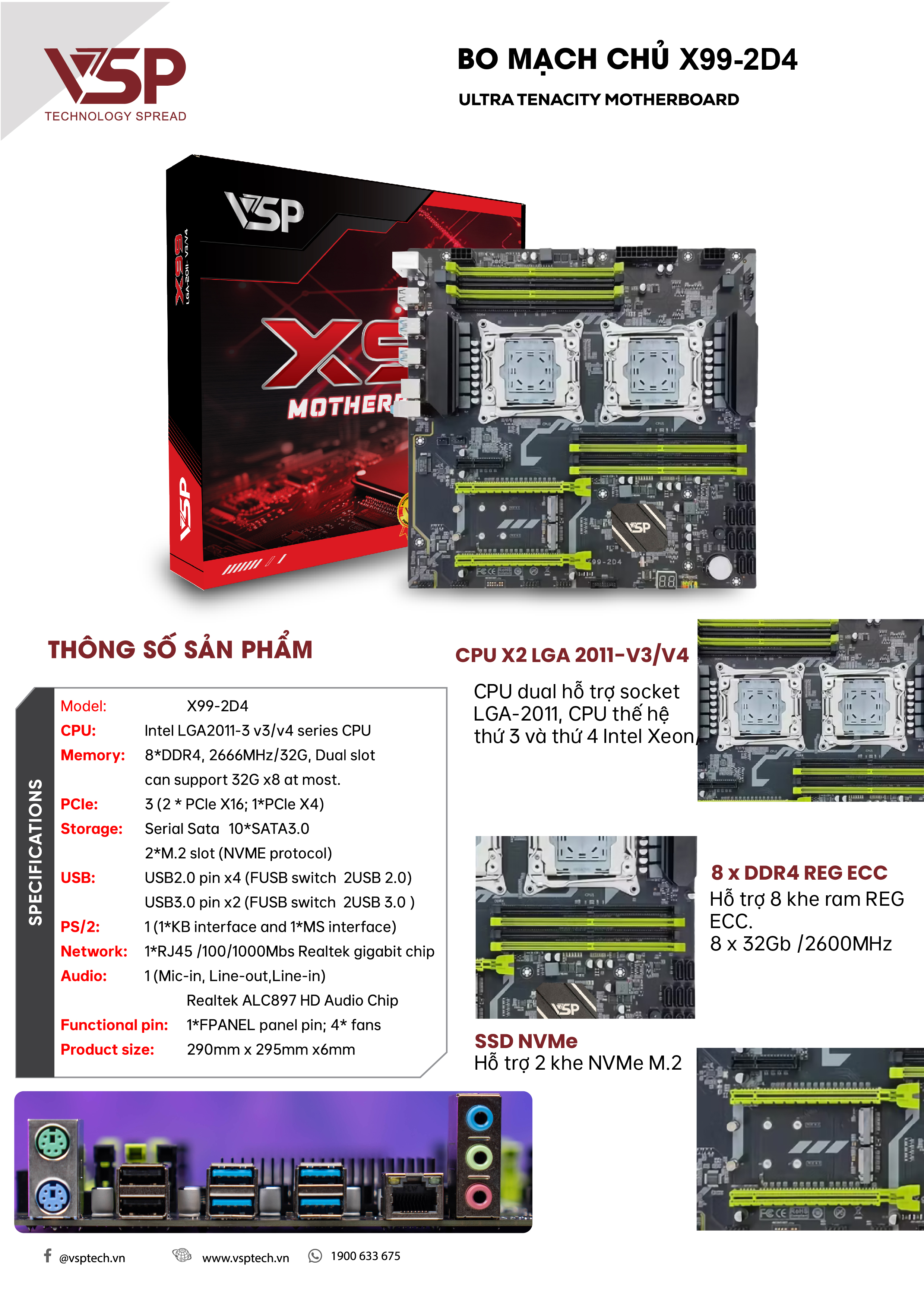8*DDR4, 2133/2400/2666MHz, Hỗ trợ tối đa 256GB