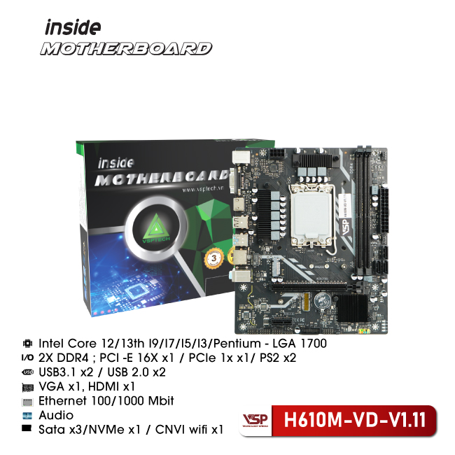 Bo mạch chủ| Mainboard VSP H610M-VD-V1.11