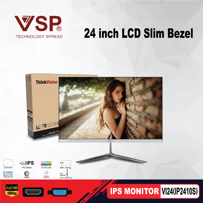 Màn hình IPS monitor VSP mỏng tràn viền Slim Bezel 24inch