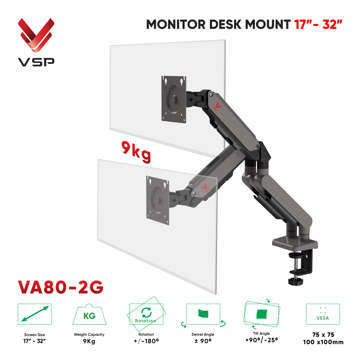 Giá Đỡ Màn Hình ARM Đôi VSP VA80-2G (17"-32" - 9KG)