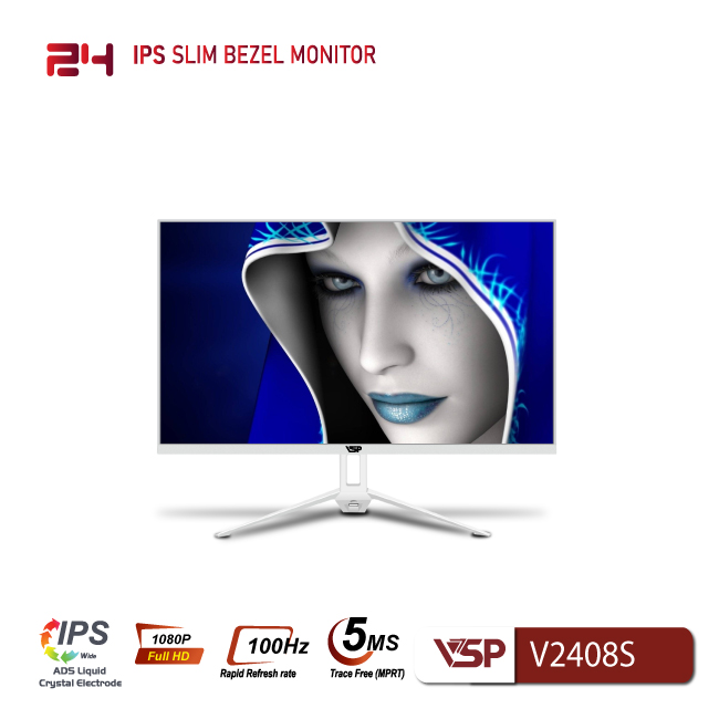 Màn hình phẳng LED mỏng tràn viền VSP V2408S (23.8" / IPS / FHD / 100Hz / 2ms / White)